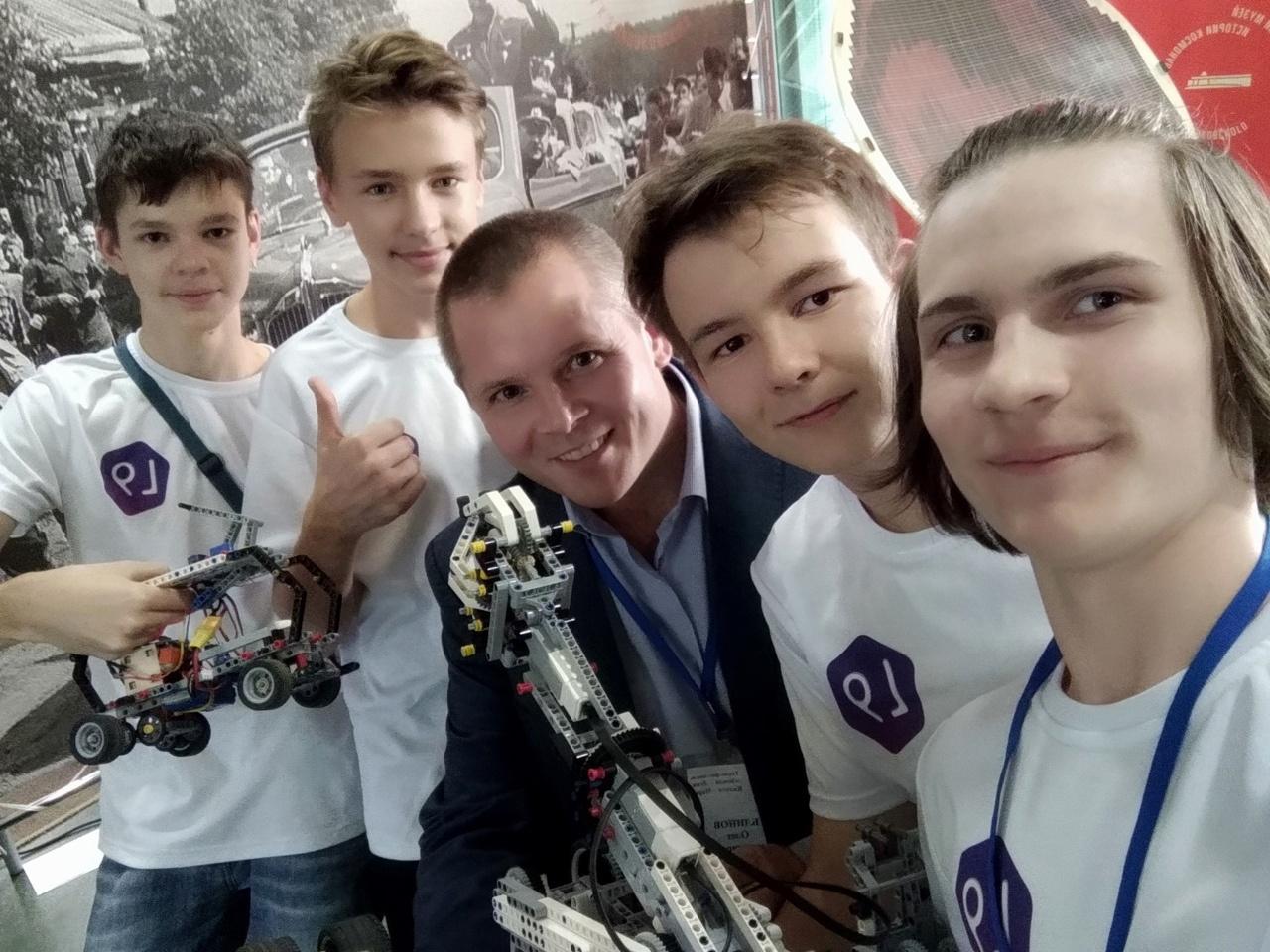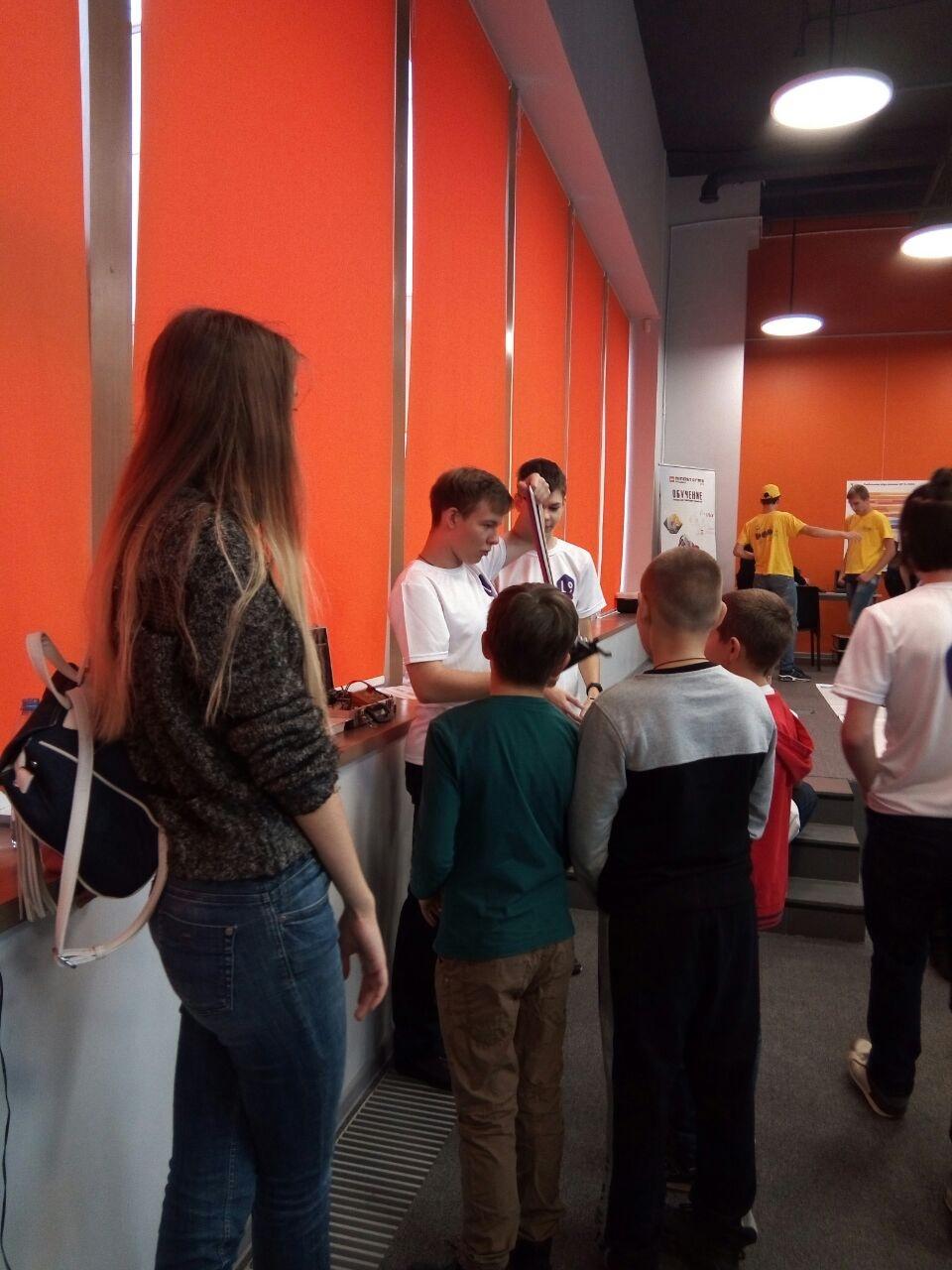 И в первых боях наш робот-сумоист успешно выслеживал и выталкивал всех жертв с поля боя. Пока против нас не встал робот от команды организаторов в лице центра космического образования “Галактика”, у которого тогда происходил ребрендинг в Калужский Кванториум. У этого робота был подхват снизу, который перекрывал датчики края поля нашему роботу, и тот, естественно, начинал заниматься побегом с “края поля”, а не поиском и выталкиванием робота. Согласно правилам, перекрывать датчики запрещено, и у нас тут же возникли претензии. Те наотрез отказывались их принимать, хотя проблему можно было решить мирно и просто, заменив подхваты на детали другого цвета. Но дискуссия переросла в жёсткую полемику, которая разрешилась благодаря хорошим отношениям Георгия с директором “Галактики”. Но осадочек остался. Кстати, это были первые соревнования, где мы появились в мерче и начали проявлять себя как бренд.