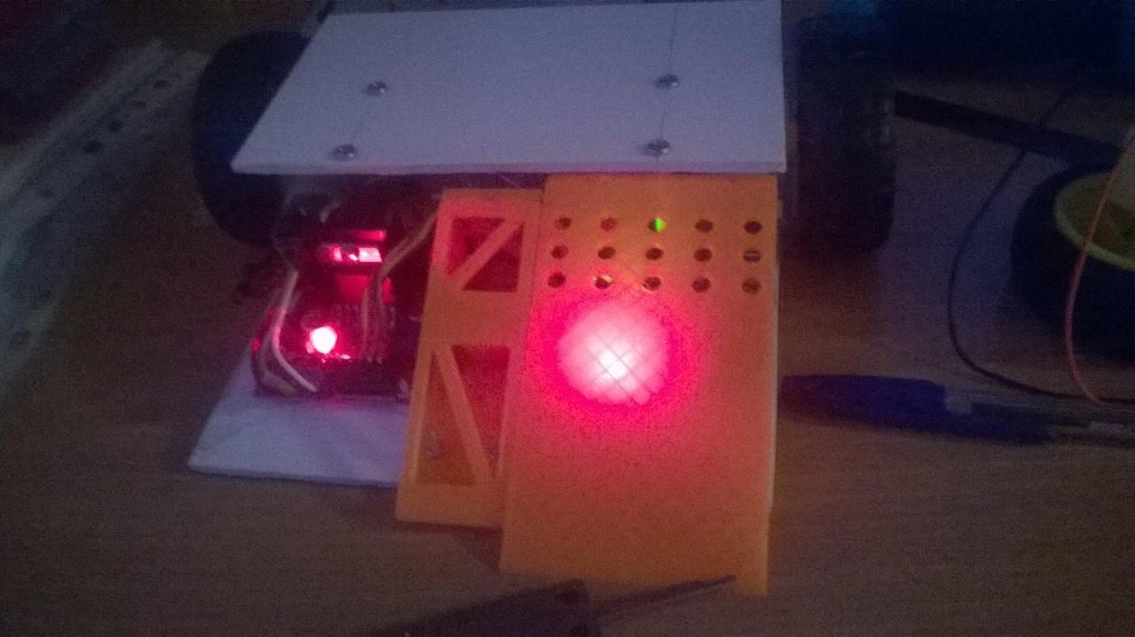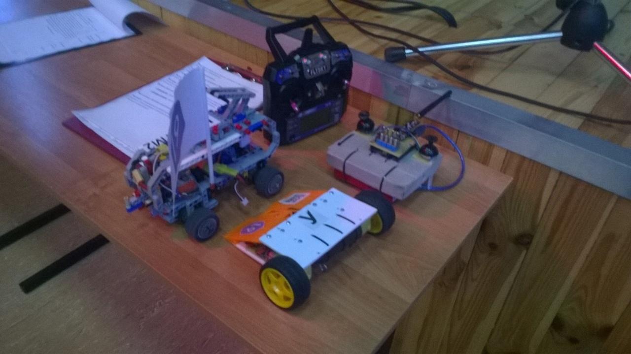 Однажды нас пригласили на очередное соревнование, особенность которого была в том, что роботы теперь не пилотируемые, а автономные. Предлагалось создать робота для езды на скорость по линии, а также для робо-сумо: столкновения роботов с целью вытолкнуть соперника за пределы поля. Почти как Битва Роботов, только без разрушений. И к этой номинации получилось создать очень хороший с точки зрения программы аппарат, от которого было невозможно увернуться: он мгновенно отслеживал все движения и шёл к цели напролом.