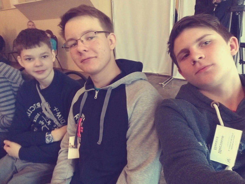 Вот они, слева направо: Георгий, Саня и Никита. На первом мероприятии в составе легендарной троицы