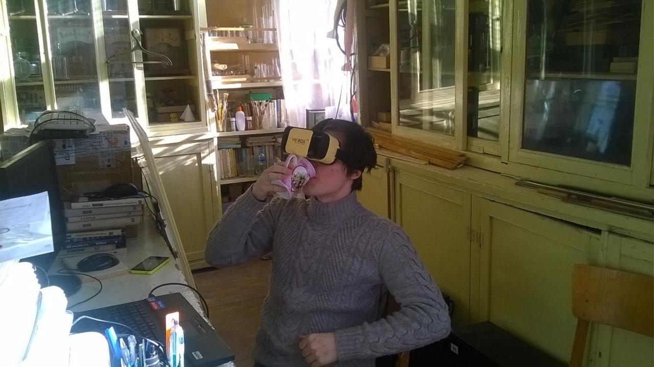 Осенью 2017 года был тренд на виртуальную реальность. Мы решили не отставать и придумали концепцию поворотной системы с камерой на танк, изображение с которого передавалось бы на VR-шлем, а повороты головы совмещались с поворотом камеры. Через огонь, воду и изучение мануалов эта затея постепенно воплощалась в жизнь. Электроника LEGO довольно капризная, неточная и нестабильная, но даже с такими условиями удалось сделать что-то рабочее. Особым весельем было после уроков вывезти танк с телефоном на борту в коридор на потеху первоклашкам из продлёнки. Те довольно бурно реагировали на нечто, в одиночку катающееся по коридору. А особо любопытные даже не стеснялись заглядывать прямо в глазок камеры. В этот момент мы очень любили включать вспышку и давать по газам :)
