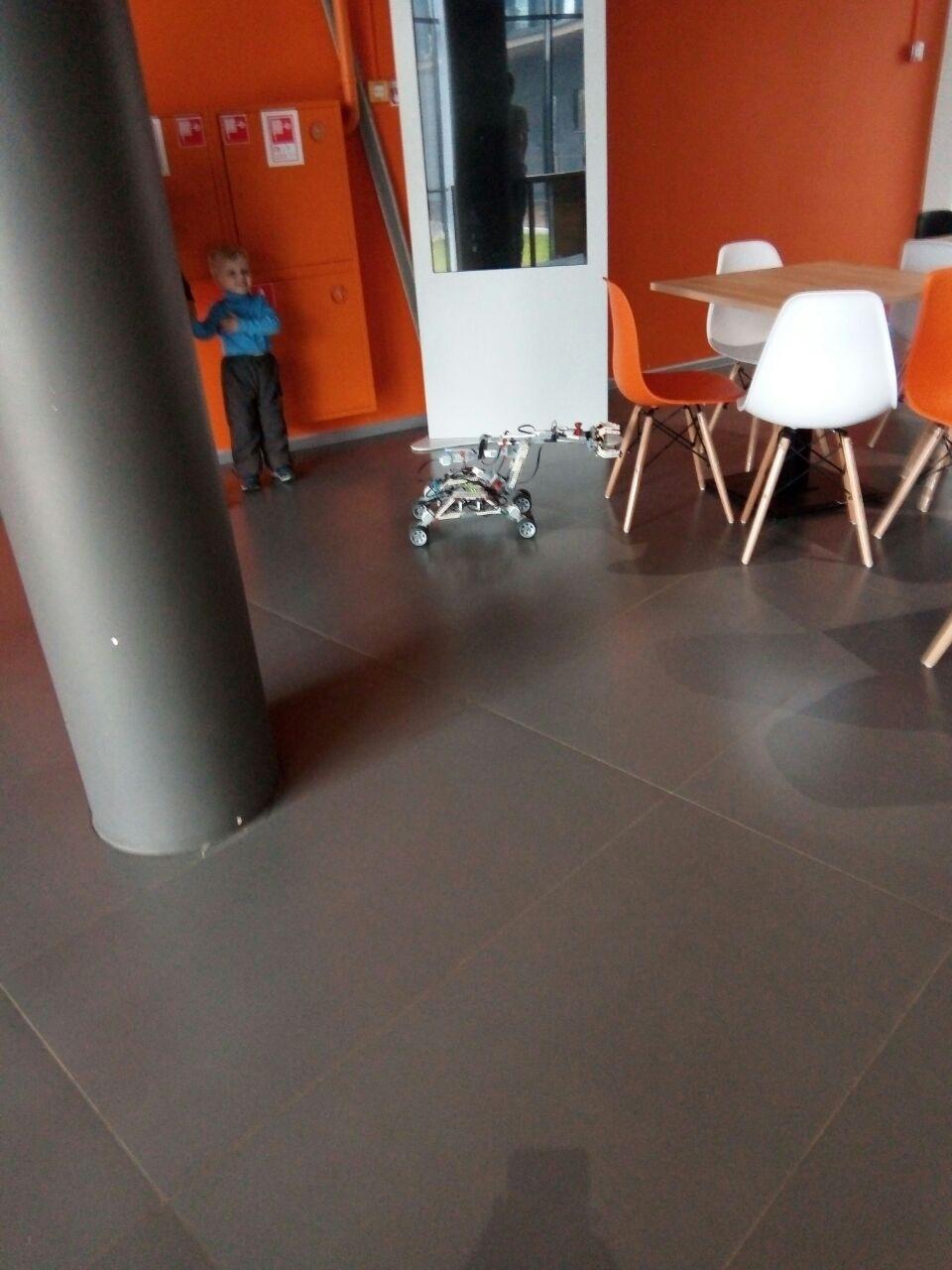 Эксперимент оказался удачным и перспективным, и дело не остановилось на тех соревнованиях. Если первая модель была очень неустойчивой и постоянно выходила из строя (что не мешала получать гору эмоций от его пируэтов), то улучшенная модель уже была более стабильной и активно гоняла по Музею Космонавтики во время очередных соревнований, кружась на значительной скорости вокруг более медлительных собратьев, иногда даже выдавая трюки из «Форсажа» :)